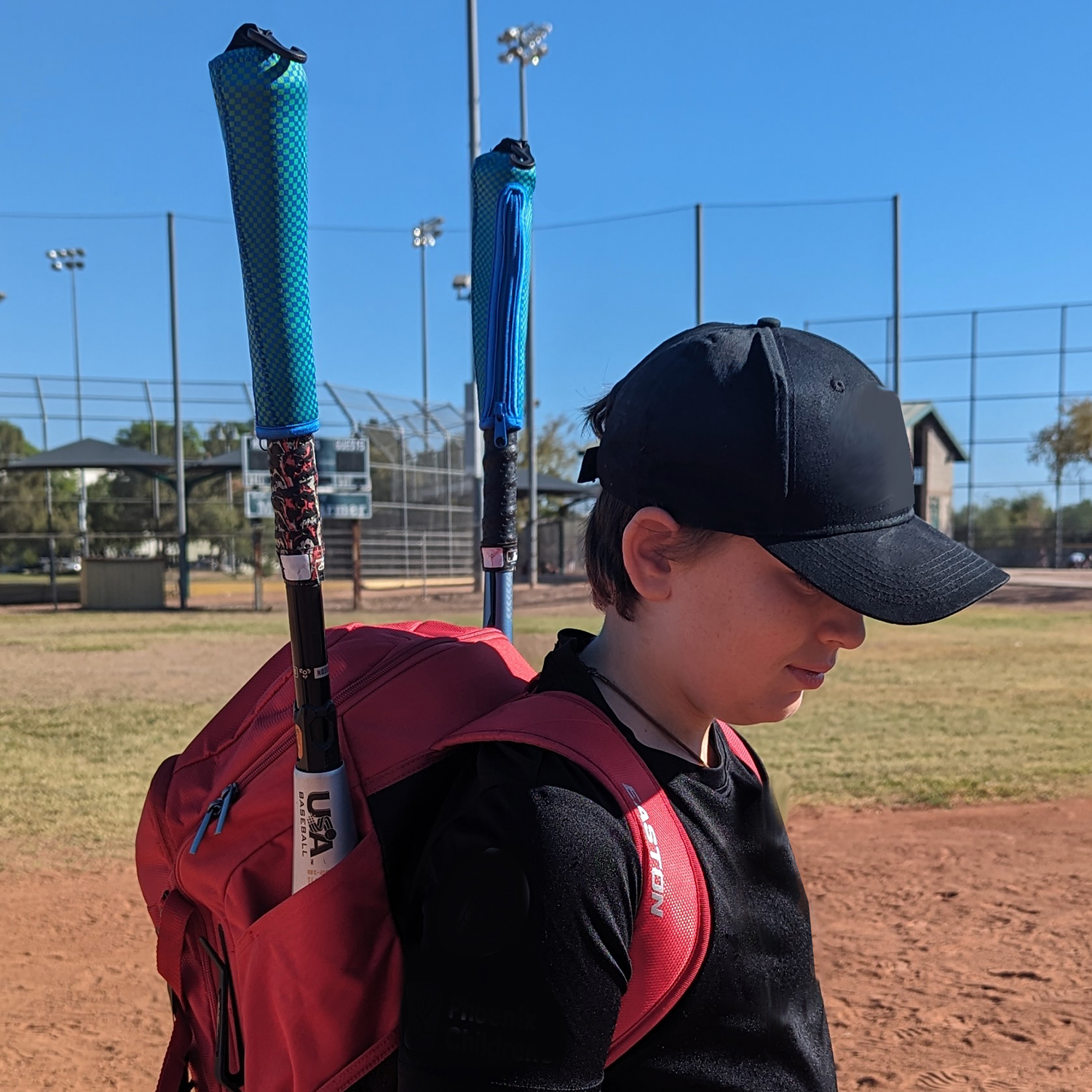 After a close call with my son's bat and my new car, it hit me (not the bat thankfully!) – we needed a solution! So, I put my design skills to work and created my own bat handle cover. The cushiony material protects cars (and everything else!), while the easy-zip feature makes them a breeze to use. Oh, and I added a clip on top for hanging bats in the dugout or in storage, and has a non-slip internal grip. This project has been my passion – combining my love for design with my family's baseball life.